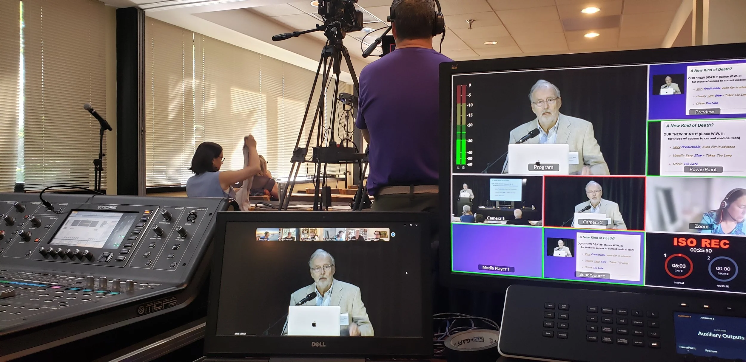 This person wanted to honor their loved one with a memorial service featuring videos, powerpoint and piano performances. We made that happen, live-streamed the service to a nearby retirement community, and produced a high-quality video for safe keeping.